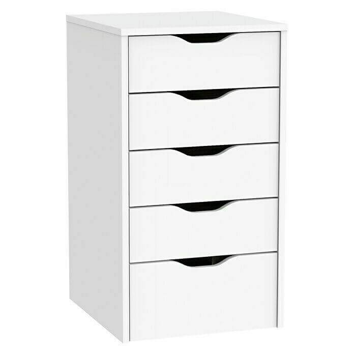 Компактная и удобная тумбочка с пятью выдвижными ящиками, идеально подходящая для хранения мелочей и документов. Лаконичный белый дизайн легко вписывается в любой интерьер.