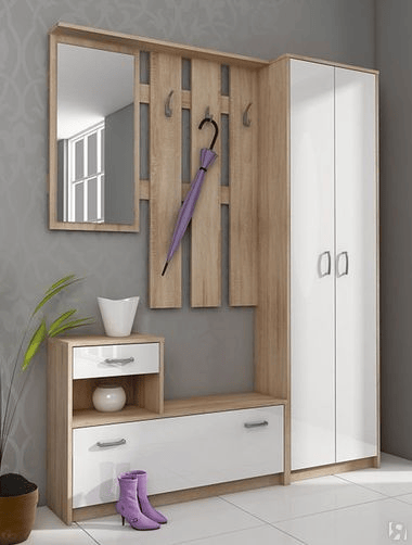 Прихожий гарнитур – удобная и вместительная модель для хранения одежды и обуви. Открытые полки, закрытые шкафы и крючки обеспечивают функциональность и порядок в прихожей.