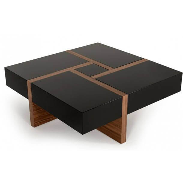Стильный журнальный столик с квадратной формой и контрастным сочетанием чёрной поверхности и деревянного основания. Современный дизайн и прочная конструкция делают его отличным акцентом для гостиной.