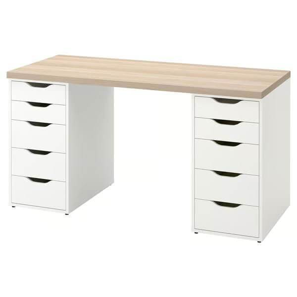 Компактный письменный стол с вместительными выдвижными ящиками по обеим сторонам. Удобен для организации рабочего пространства благодаря большому количеству отделений для хранения и прочной столешнице.