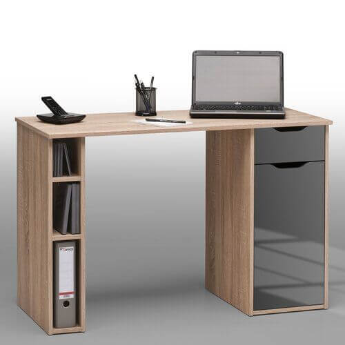 Письменный стол – компактная и удобная модель для домашнего офиса. Оснащён боковыми открытыми полками и выдвижными ящиками, что обеспечивает удобное хранение документов и канцелярии. Столешница устойчива к нагрузкам и подходит для работы с ноутбуком или ПК.
